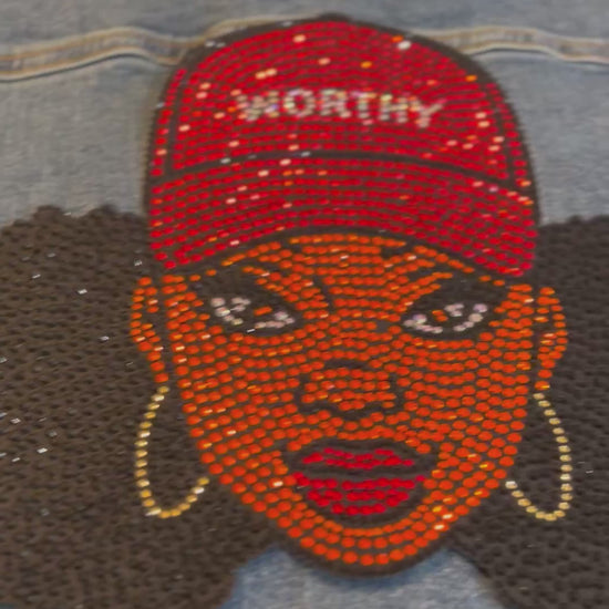 🔥 Oversized Back Patch blinged out with colorful rhinestones on Denim Jacket